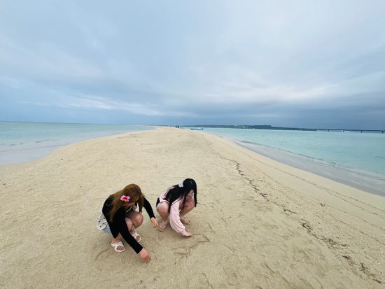 夕日は干潮のためユニの浜では見られずでしたが、代わりに朝のユニの浜に連れて行って下さいました。他の観光客もほとんどいなくて、すてきなドローン撮影会をしてくださいました。スタッフの方、本当にやさしい方達でした、ありがとうございました。