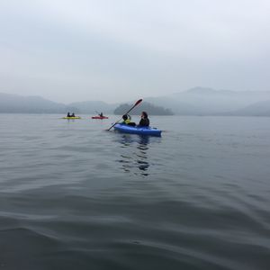 さて、参加者が全員そろい陸上でパドルの持ち方から漕ぎ方まで軽く指導していただき、早速乗船。2名一組の船でした。私たちは2人参加でしたので全く問題なかったのですが、3名組の方たちは一人違う方と組む形になるので偶数での参加が良いかなと思いました。