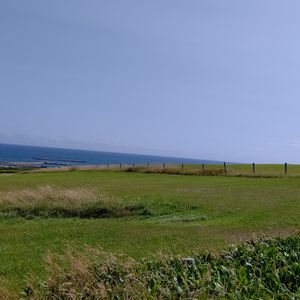 最後に…宗谷岬から双眼鏡で必死で樺太の島陰を探し、うっすら樺太の山が見られて嬉しかったです❗️子ども達は流氷館で本物の流氷に触れて喜んでいました。