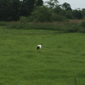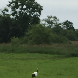 While driving, he told me some red-crowned cranes were in the distance. I hear that it is rare to be able to see red-crowned cranes while driving on the road. When he was saying ""Today is lucky!"", we found another red-crowned crane couple far nearer to us. As the driver stopped the taxi, I could see red-crowned cranes from the taxi.