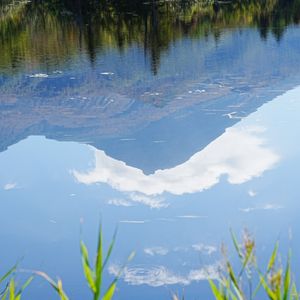 風もなく、湖面に知床の山が映って良い写真がとれました。
