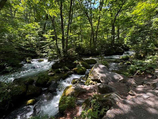 奥入瀬は川沿いで木々に覆われ、市内の暑さとは格段の差があり、9キロを気持ちよく歩くことができました。