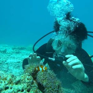 リクエストしたカクレクマノミのスポットに沢山案内してくれました。イソギンチャクに隠れている姿がかわいい。天候的にマンタは見れなかったけど、最高のダイビングでした。ありがとうございます。