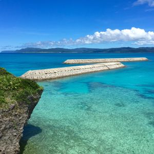 白い砂浜と青い海。沖縄ならではのうつくしい景観。