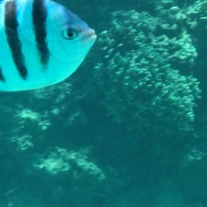 色んなところでシュノーケルをしましたが、こんなに人なつこい魚は初めてでとても楽しかったです。