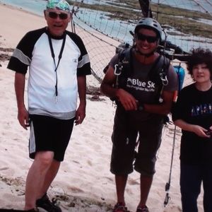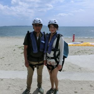 両親にパラセーリング体験をプレゼントしました。