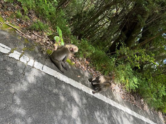 林道内ではたくさんのシカやサルたちに出会いながらの散策、
