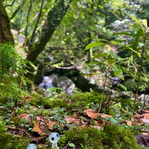 屋久島あるあるなのかな(現地の人は慣れっこなのかな)?飛行機が欠航というアクシデント(えっ、まじ!)、前日入島&翌朝ホテルピックアップ(午前ツアー)から変更して、屋久島10:55到着後に空港にてレンタル靴合わせ&受け取り、空港前のツアー屋さん11:40ピックアップ(午後ツアー)に電話相談で変更(到着すぐに行けるんや!びっくり)。参加者の皆さん(2組計4名)に次の予定がないことからガイドさんが5時間かけてゆっくり案内してくれました(午後ツアーの方がお得かも)。写真もガイドさんが合計約70枚も撮ってくれました(すご!)。こだま人形はガイドさんが用意してくれたものです。