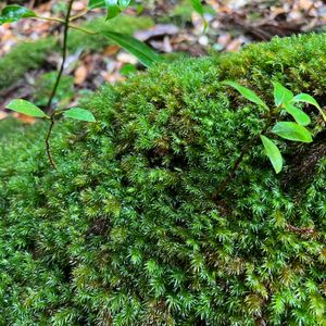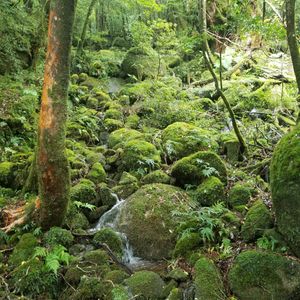 帰り道、霧雨で生き生きしている苔や木々に触れ