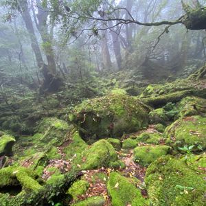 前日に大雨予報が出て太鼓岩まで行くのは難しいかも、という状況の中時間を早めて行ってみることにしました。だんだん雨が強くなって来ましたが濡れた苔や木々がすごく綺麗で、霧も出てきたのでイメージしていたままの幻想的な景色を見る事が出来てほんとに感動しました✨太鼓岩まで行ける事になり真っ白な景色を想像してましたが、運良く強風でガスが流れる瞬間に景色を見る事が出来たのでめっちゃテンション上がりました!!