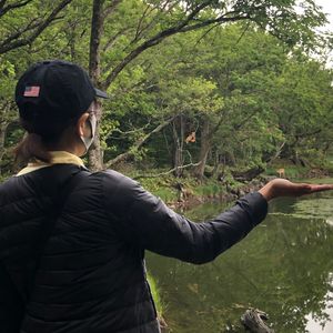 雨が降ったりやんだりの少し不安定な天候で参加しました。現地まで車で一時間とのことで暇だなあと思っていたのですが、社内ではガイドさんがバスガイドさながら右手左手に見えるものの様々な情報を(と例えば通り過ぎた店のなんとかが美味しいとか、川でのエビの釣り方とか) 冗談を交えながら紹介してくださいました。