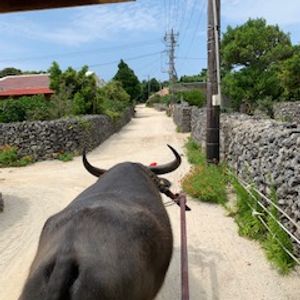 竹富島での水牛車を選択しました。水牛車に乗っている間は、操縦士さんが水牛や竹富島に関する豆知識を披露してくれたり、竹富島伝統の唄を歌ってくださったりと、丁寧な接客でした。