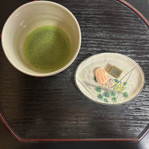 スタッフが2人しかいないせいか、各組の進捗状況まで気配りができていません。早く終わりましたが挙手するわけにも言いに行くわけにもいかず、同じ組の全員が終わっても気づいてもらえず、抹茶が出てきたのは予定終了時刻を10分ほど過ぎてからでした。2人のスタッフは写経スペースの後ろでずっと作業をしていて、こちらを気にする余裕はありませんでした。