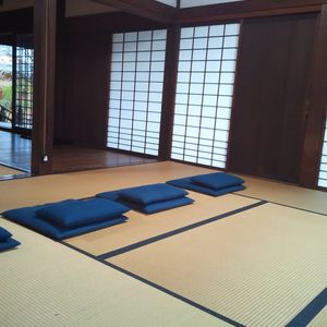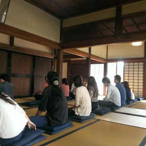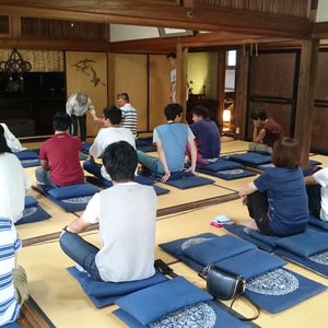 行く前はきっと少人数だよなぁ、私たちのグループだけかもなぁと思っていたのですが、着いてみると広いお座敷に私たちの他に20人くらいの方(20代後半くらい~40代くらいの方中心で男女同数くらい)がいて驚きました。坐禅体験人気なんですね!