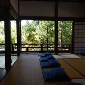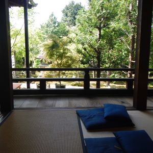 く遠く感じましたが、帰りはすぐでした。京都駅から一駅で快速?も普通もとまるのですごく行きやすいかったです。庭の緑のもみじがすごく綺麗で写真をいっぱい撮りました。お寺に入ったらすぐ座禅体験の場所で少しびっくりしました。受付を済ませるとどうぞとゆわれただけだったので、どうしようと思ったのですが雰囲気で好きな席なのかな?と思って開いてる席に座りました。しばらくするとお寺の説明、座禅の説明をしていただき座禅に入りました。15分間の座禅が二回とでちょうど良い時間だったと思います。緑溢れる場所で涼しい風が入りながらの座禅はすごく心が休まりました。座禅終わり、少しまたお話をしていただき座禅体験が終了しました。その後にオプションでつけたお抹茶をいただきました。お抹茶もお菓子も美味しかったです。堅苦しい雰囲気もなく、居心地もよかったのが素敵でした。東福寺も近いので帰りに寄って帰ることができました。