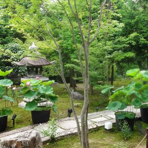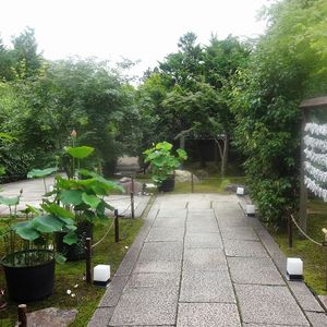 1時間位早く着いたので周囲をゆっくり見せて頂きました。雨上がりなので木々の緑は勿論アジサイやユリ等生き生きと咲き、鉢植えの蓮の花々に癒されました。