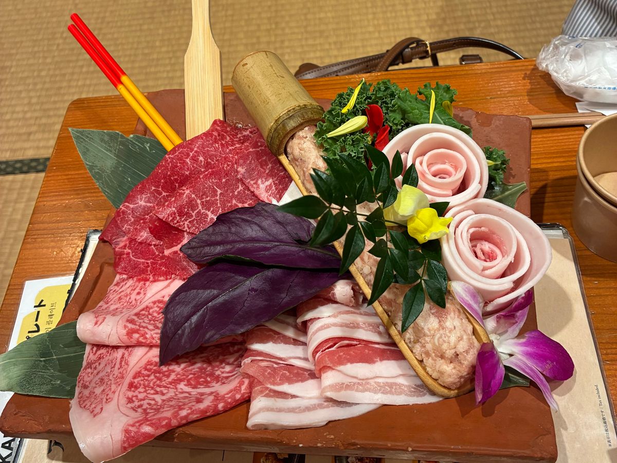 アグー豚と石垣牛の食べ比べ。