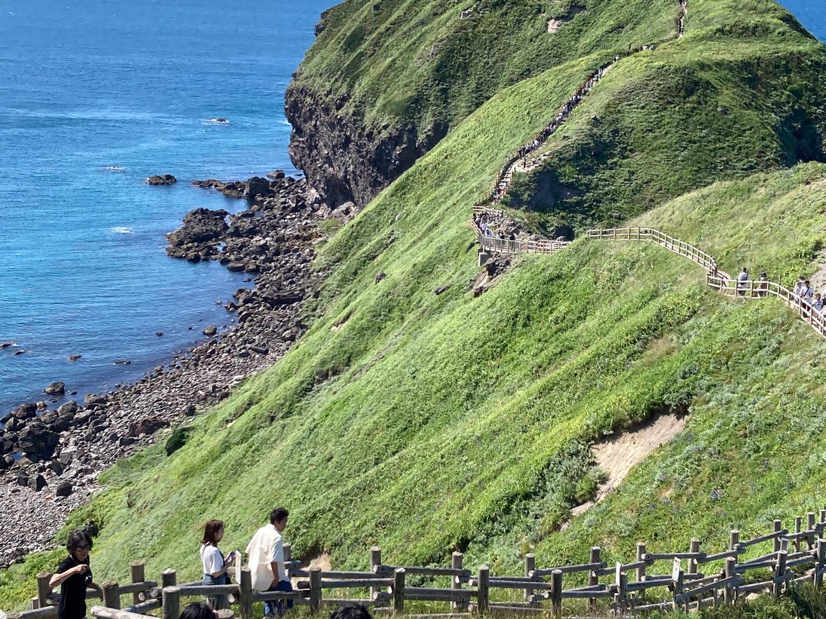 念願の神威岬でしたが、暑さと時間、自分の体力の関係で、先端まで行くのは断念して引き返し、美味しいアイスクリームを食べました。頑張って往復された方もいました。海の美しさは衝撃的で、砂糖をまぶした海が空と繋がっているかのように見えました。田中酒造も興味深く見学させていただき、ヨーグルトのお酒を購入できました。効率よく概ね平和な旅でしたが、浜寿司で、お茶をマイポットに満たしておられる外国人の方がいて、補充されず後の方が飲めなくなりました。事後にガイドさんから日本語で注意がありましたが、日本語で意味あるの?という感じでした。外国人への一般的な注意事項は最初に英語の音声が流されましたが(お茶の件はさすがに入っていません)、集合時間厳守も含め、他の言語でもプリントにして渡す等の工夫があってもよいと思いました。仲間同士のお喋りについても、かなり細かな注意があって一人旅の私としては有り難かったのですが、外国人の方には通じていませんでした。内容的には良いツアーでしたが、その点は改善の余地があると感じました。