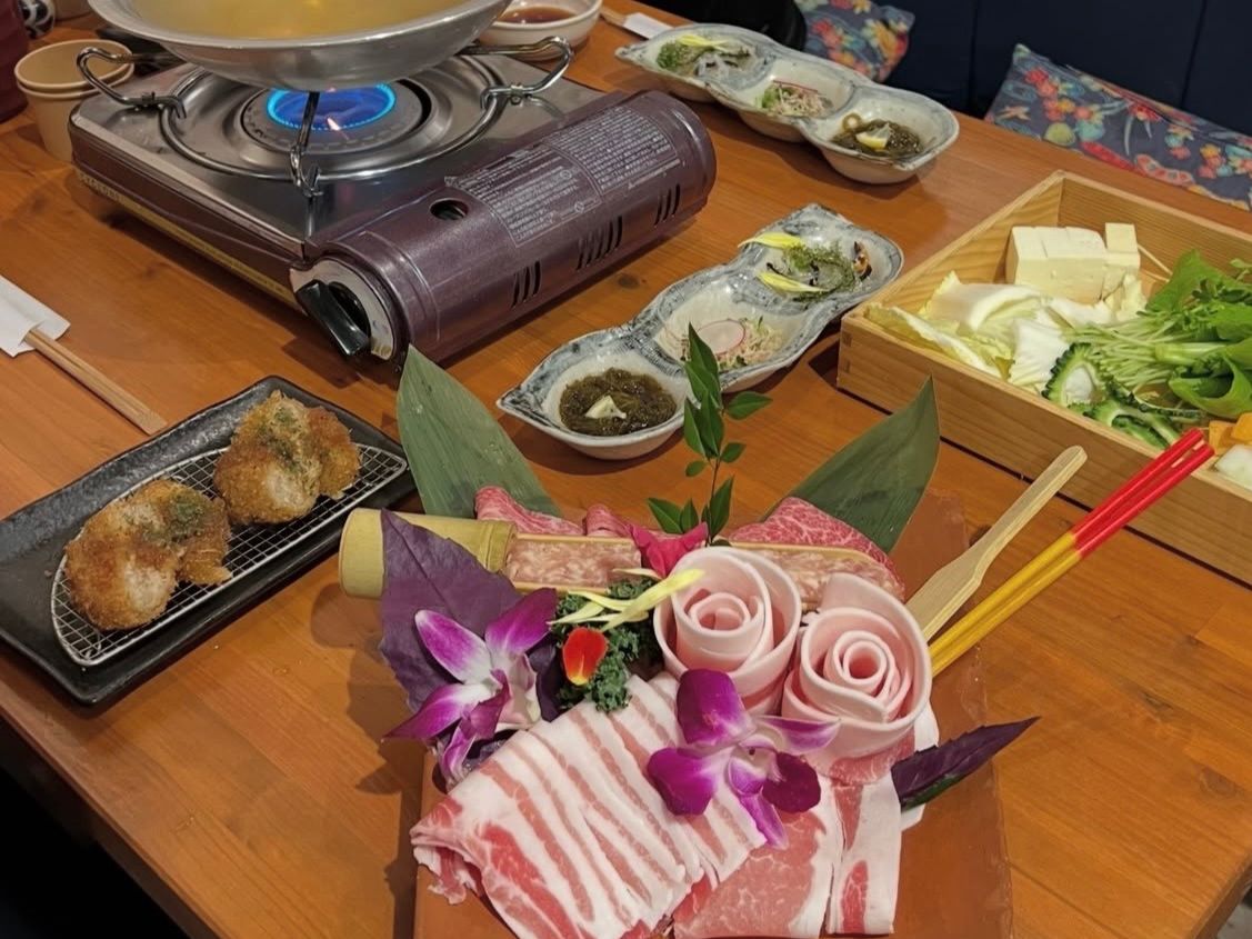 あぐー豚も石垣牛も美味しかったですが、ブッフェの野菜が美味しくて、冬瓜やゴーヤが鍋料理に合うとは予想してなかったので、驚きました。ポン酢やゴマだれ以外に島とうがらしやおろしニンニクなどで味変も楽しめました。