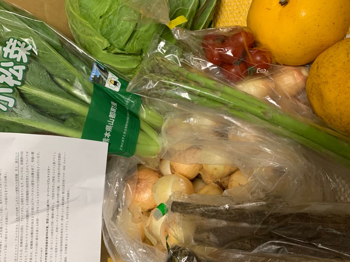 めちゃくちゃ大きいキャベツは丁寧に巻かれて、トマト、玉ねぎはビックリする量。牛蒡、とうもろこし、、、アスパラガスは絶品でした。けどお野菜リストも無く…前回は入っていた様に記憶してます。少しそれでアレ?ないの。ガッカリでした。