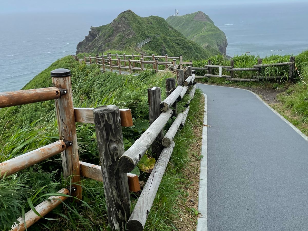 神威岬はかなり凸凹道を歩くので、歩きやすい服装と、夏は飛ばされない帽子が必須です。道が細いので日傘は人にぶつかるのでNGです。