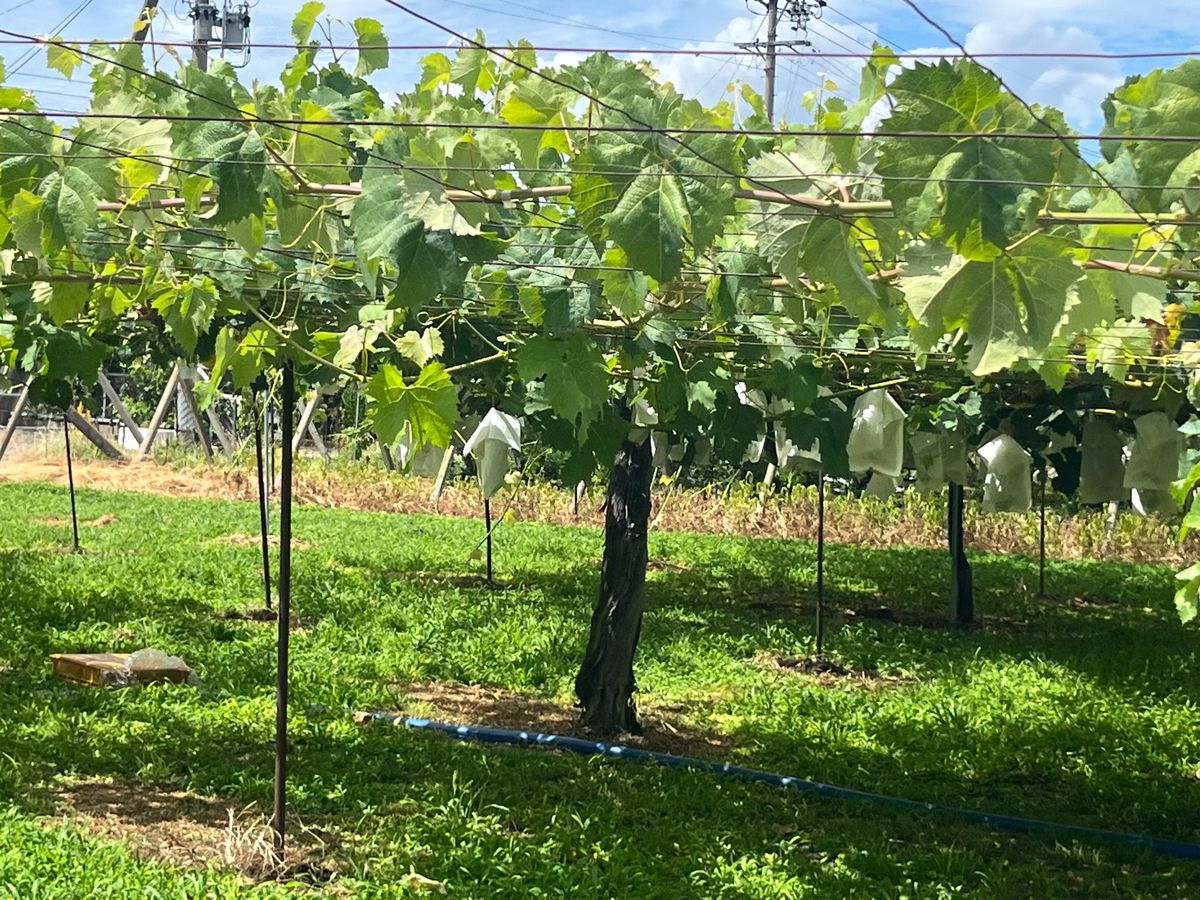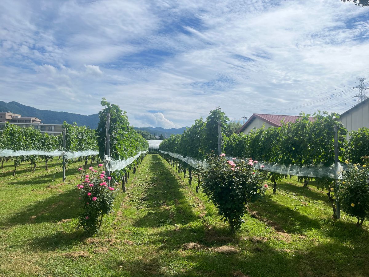 幸い当日は風もあり連日猛暑が続いていた時期としては過ごしやすい1日で、あちこちに広がる葡萄棚を見たり、葡萄の香りを楽しみ、ツアーガイドのけんちゃんさんの塩尻とワインについてのお話を伺いながらのウォーキングはとても楽しかったです❣️