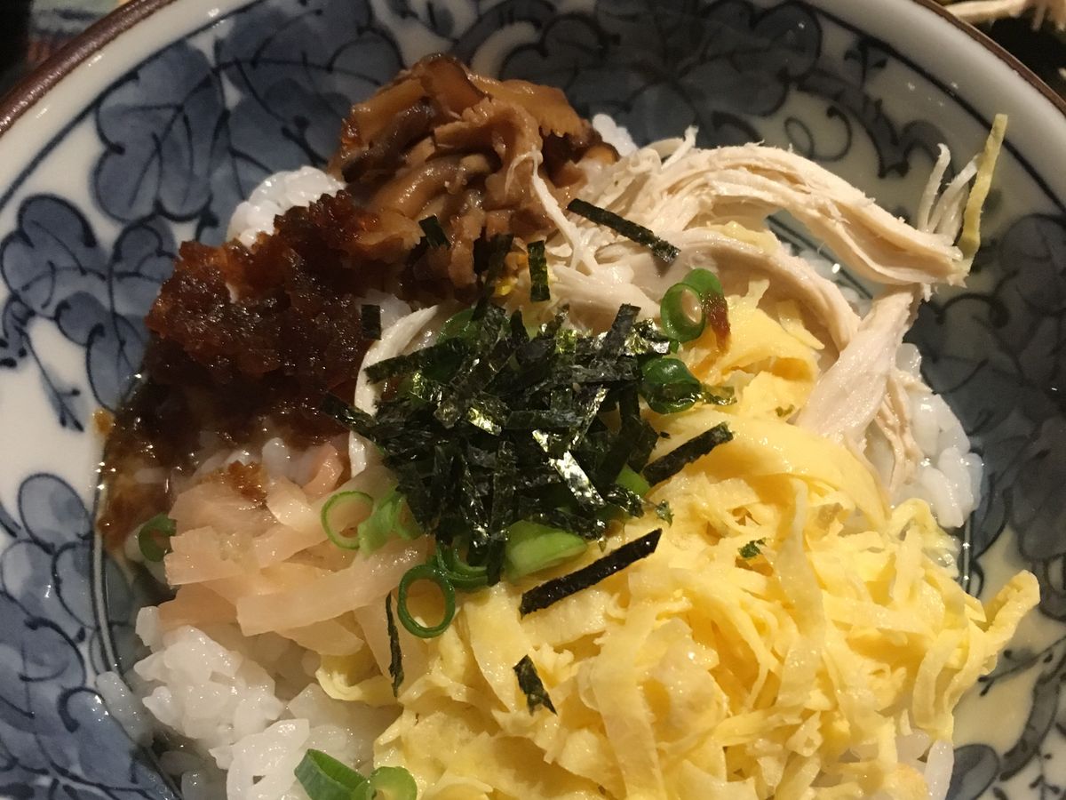 こちらの鶏飯は鶏肉・たまごの味付けは基本通り薄味でしたが、椎茸や奈良漬などの味付けがしっかりしてあり自分好みに混ぜる楽しみがありました。老舗もこちらもそれぞれ大変美味しい鶏飯でした。店によっても味や付け合わせが違ってくるので、食べ比べてみるのもオススメです。