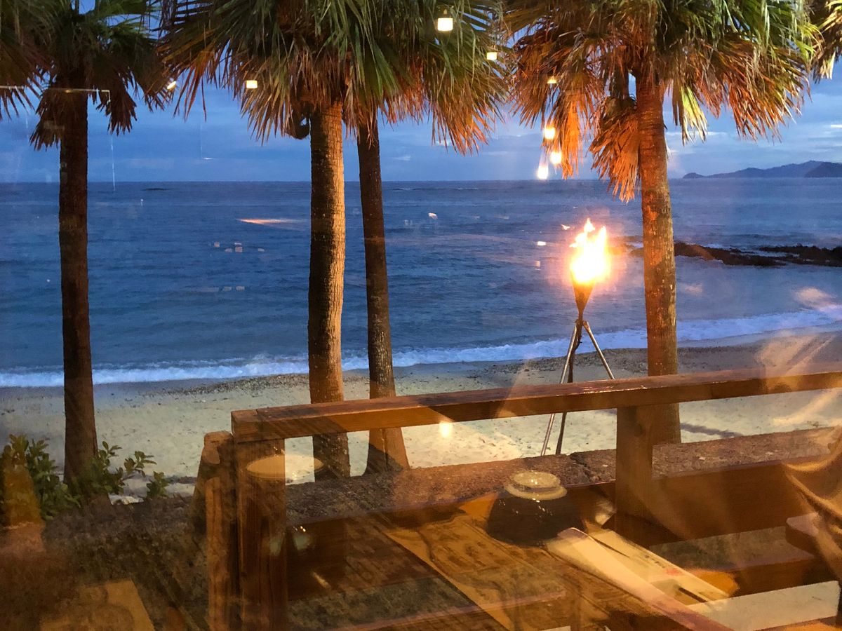 内装も南国風に凝っていて外の景色も綺麗な浜辺にたいまつが置かれており雰囲気抜群でした!