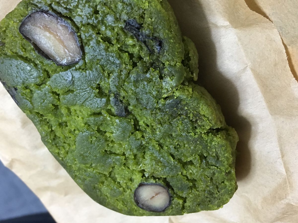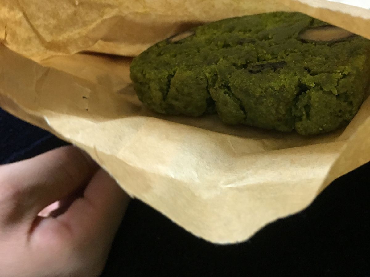 抹茶のパウンドケーキは茶色い紙袋に包まれて渡され、すぐ食べれるようになっていました。