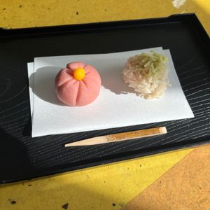 体験する建物はとても古く、トイレも1つしかない、時間まで座って待つ場所もないところですが、体験は楽しいです。同じ材料なのに、それぞれ出来上がりがかなり違います。お抹茶と一緒に食べましたが、甘すぎずとても美味しかったです。