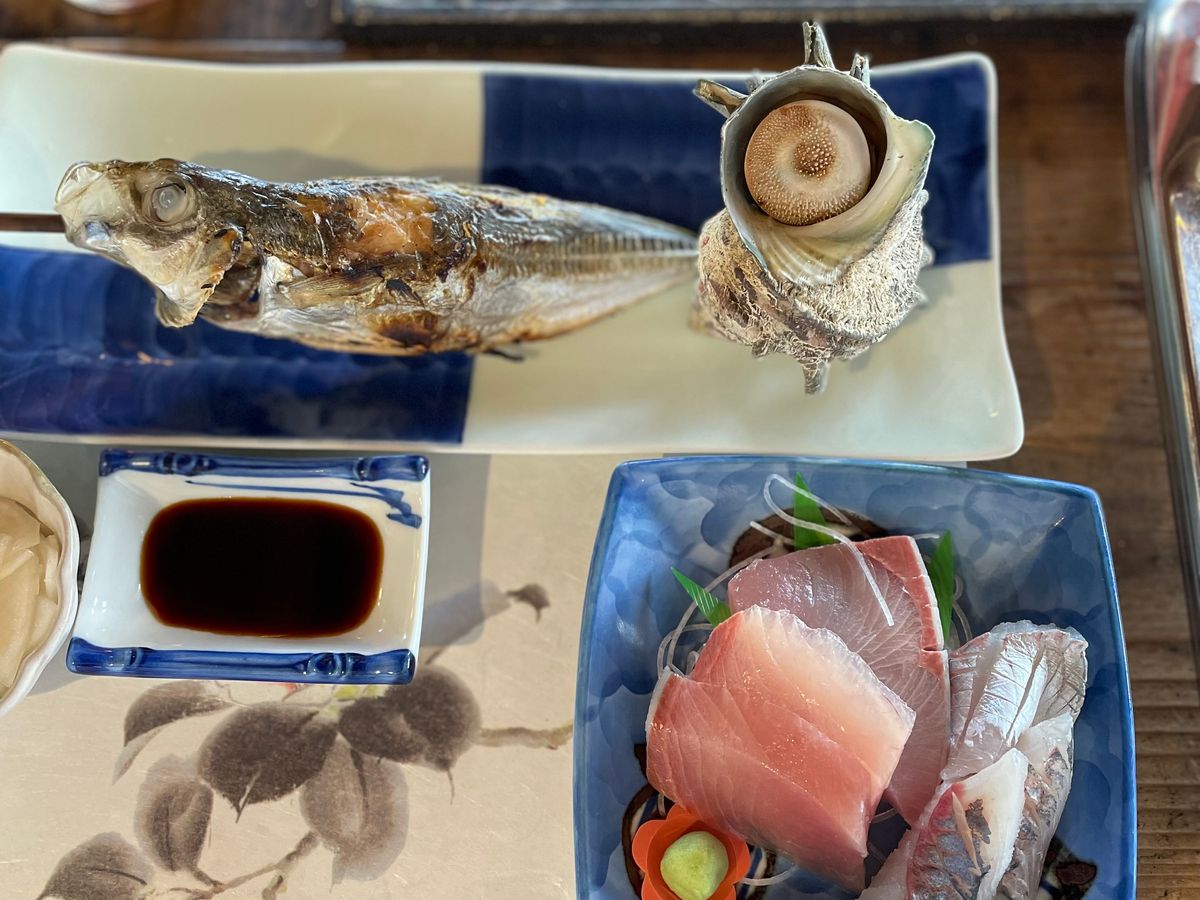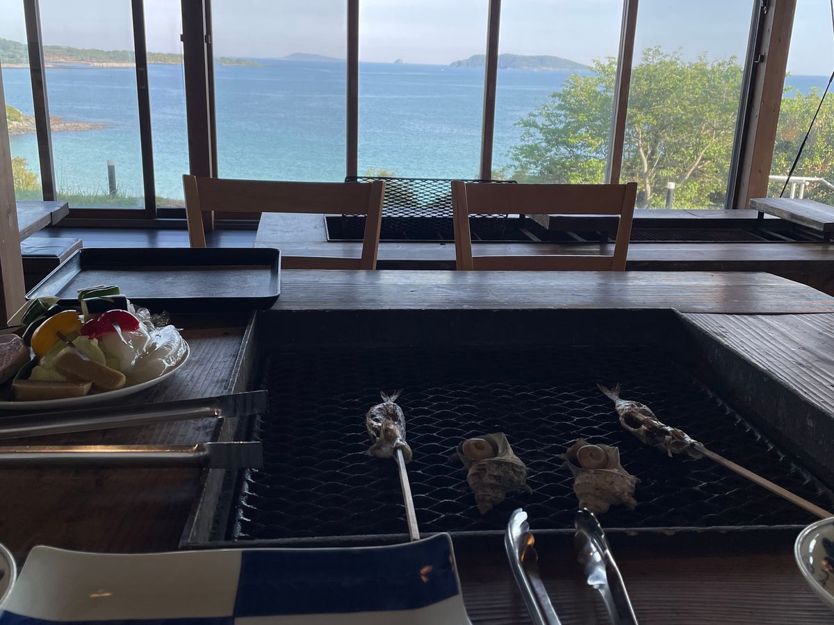ロケーションが最高で海を見ながら、ご当地の食材を活かしたお料理をいただきました。どれも新鮮で美味しかったです。量が多くて、持ち帰らせていただきました。私は個人的にかんころもちとイカが気に入りました。