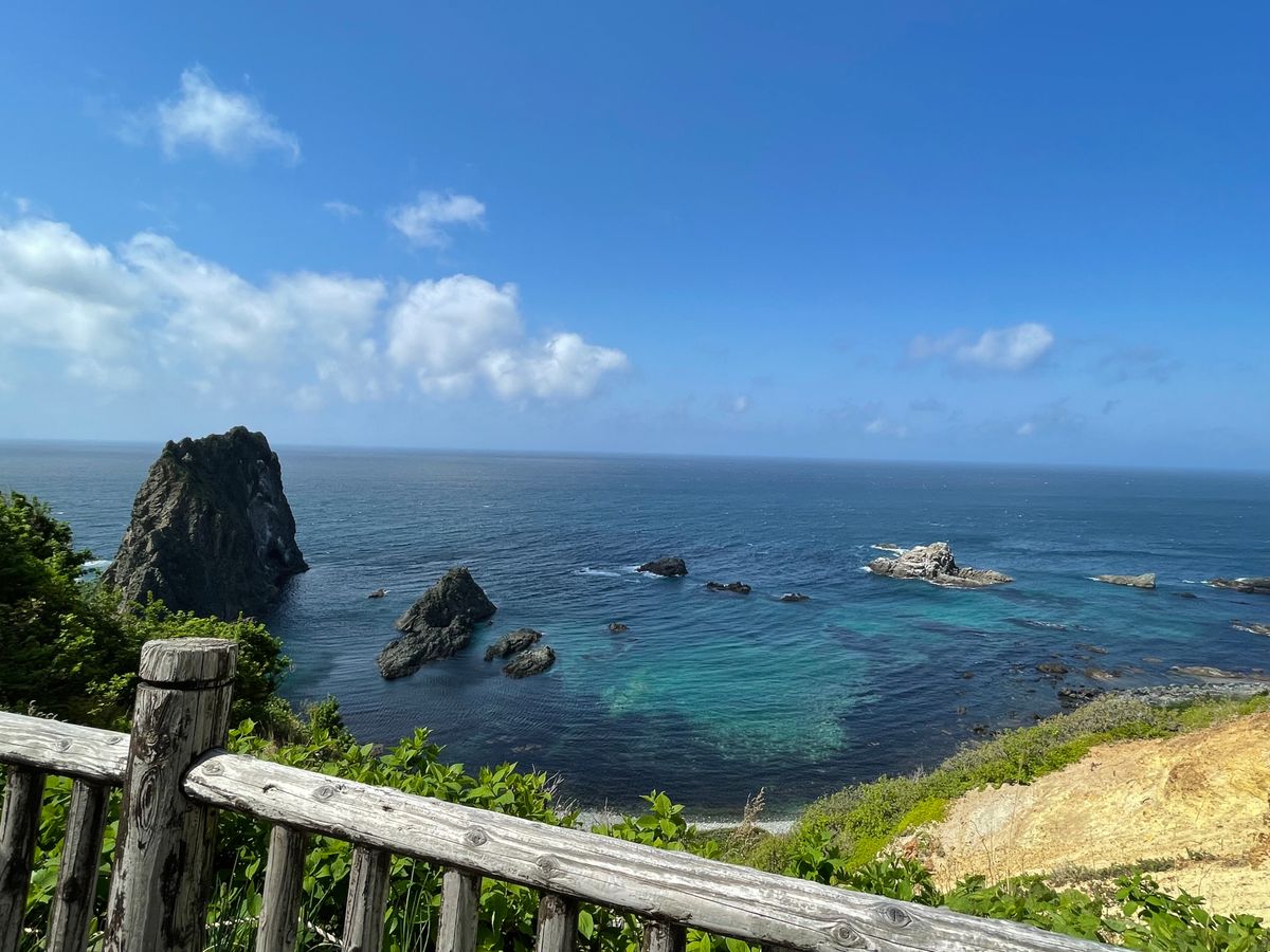 念願の神威岬。先端に行った時の感動と海の透き通った青さが素晴らしかったです。