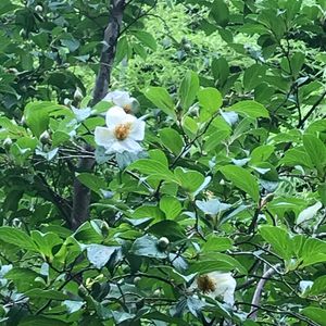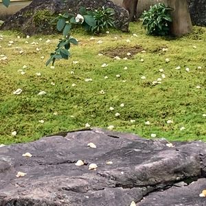 沙羅の花が満開で、苔の上に散った花が綺麗でした。
