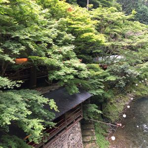 気温が35度を超す猛暑日でしたが、こちらは涼しく気持ちいい風が吹いていました。12時の予約で送迎を申し込み11時半くらいに到着しましたが席は用意されていたので待たされることは無かったです。お食事もおいしく、自然の中でゆったりとした時間を過ごすことができました。しばらく席で休んだ後近くを散歩してちょうどよい感じで帰りのバス時間となりました(みんな揃ったので早めの出発でした)。川床は鴨川沿い、と思っていたのですが涼しさと癒やされ感を考えたらこちらのツアーを申し込んでよかったと思います。