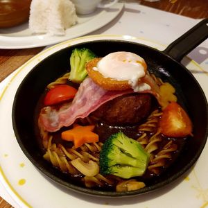 初めて伺いました。盛況なようで、予約をした時間に行ってもスタッフを捕まえるに苦労しました。席に案内されて10分放置後、スープが来ました。カレー味のスープはご飯を投入したくなる気持ちになりました。付け合わせの野菜も、エビも(シーフードはエビのみでした)、お肉も、ほぼ同じ味付けにするので、途中で食べ飽きました。お料理を食べに行ってるので、そこは考えてほしかったです。ですが、焼き上げのパフォーマンスは面白かったです。