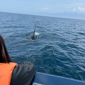 濃霧でしたが出航、こりゃ何も見られないかなと期待薄でしたが霧の中から鯱の群れが現れ、船員さんのテクニックによりすごく近くまで寄って下さり、3mくらいの距離てシャチを見られました!シャチの方も慣れているのか、人間を観察して遊んでいる感じで、恐怖心は感じませんでした。マッコウクジラにも出会えて、その雄大さに感動しきりでした。動画とかとは違う感動でした。全く出会え無い日も有るとの事でしたが、シャチがウジャウジャいる様子が見られ、ラッキーだったようです。