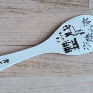 所要時間10~15分と観光の時間も邪魔せず、5種類の焼印を好きな場所におすだけで簡単にオリジナルしゃもじが作れます。