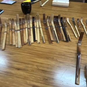 まずは沢山の茶杓候補の竹のなかからお気に入りの一つを選び、ナイフで少しずつ削っていきます。