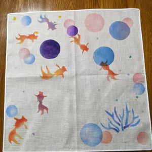 ハンカチで予約したものの、お店に行くと様々なアイテムがあり、家族4人それぞれがTシャツやブックカバー、巾着などを選び最後に差額を精算しました。