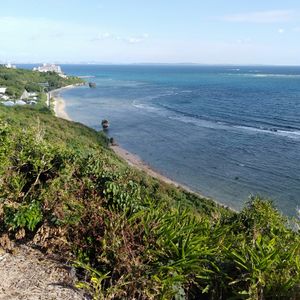 斎場御獄の見学後、少し時間が余ったので、徒歩ですぐ近くの知念岬公園まで行って、沖縄の海やすぐ近くに浮かぶ久高島の風景を楽しめました。
