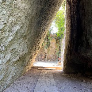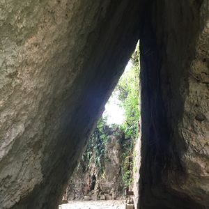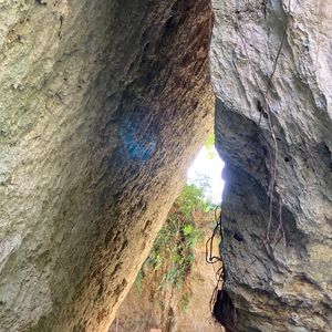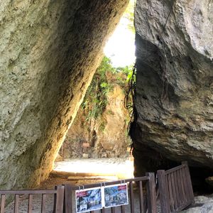 地名ばかりはその地方独特の読み方がある。この「斎場御嶽」もその筆頭だと思われる。ガイドさんにこの地名を教えてもらったが、こうしてワード文章を作成している今も正式名は思い出せず「さいじょうおんたけ」で変換している。(歳はとりたくないものだ…)歩道は珊瑚石で敷き詰められた石畳でアップダウンがあり、道端には「ハブ注意」とも書かれ沖縄の原生林を歩いているようだ。世界文化遺産とのことで、儀式を執り行ったと言われる神聖な場所であるとのこと。