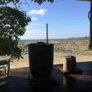 途中、おきなわワールドか新原ビーチの選択ができました。わたしはビーチを選択しました。1時間半くらい時間がありグラスボートに乗ってからカフェでひと休みすることも出来ました。