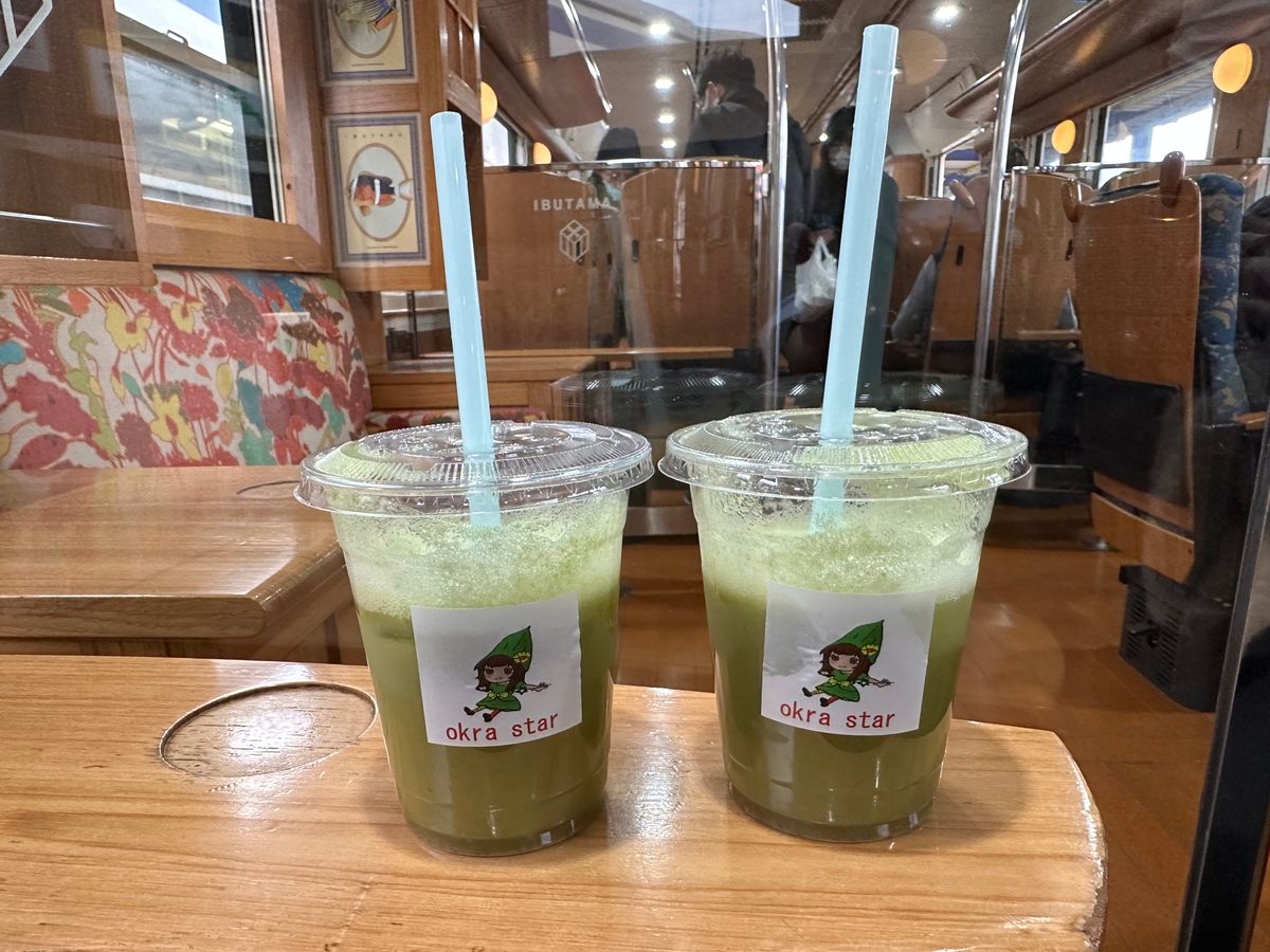 砂むし体験の後で駅前の指宿観光さんのビルでオクラスムージーをいただきました。追加で1つ注文させてもらいました。