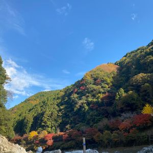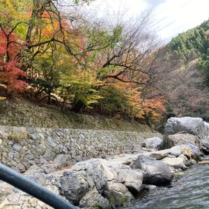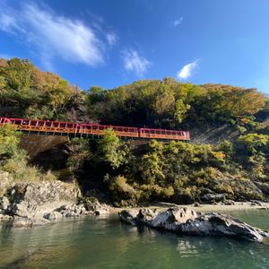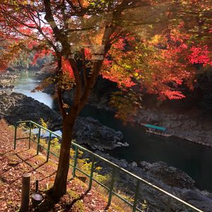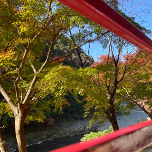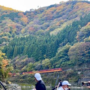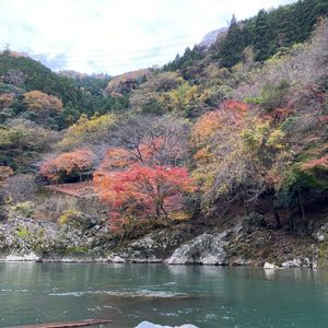 紅葉し始めの頃で、緑〜黄色〜橙〜朱色〜赤のグラデーションが美しい時期でした。トロッコもとても気持ちが良かったのですが、長くて退屈するかもと少しだけ思っていた保津川下りが一番良かったです。川から見上げる山々の美しさと壮大さ、自然に抱かれているような感覚を是非体験してほしいです。山や乗ってきたトロッコ列車を眺めながら、時々ある急流ポイントはアトラクションのようで約2時間、ゆったりと楽しめました。飲食もOKです。最後の最後、渡瀬橋に着く直前でイカ焼きや甘酒などを売店船から購入できます。とっても楽しかったです!ありがとうございました。
