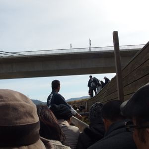 一年中楽しめるトロッコ列車はガタガタ  保津川下り先頭でびっしょり