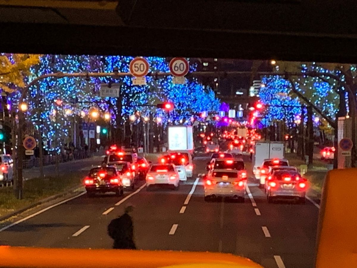 もう少し高速ゆっくり走れたら御堂筋のイルミネーションがゆっくり見れたのに、、チョイ残念