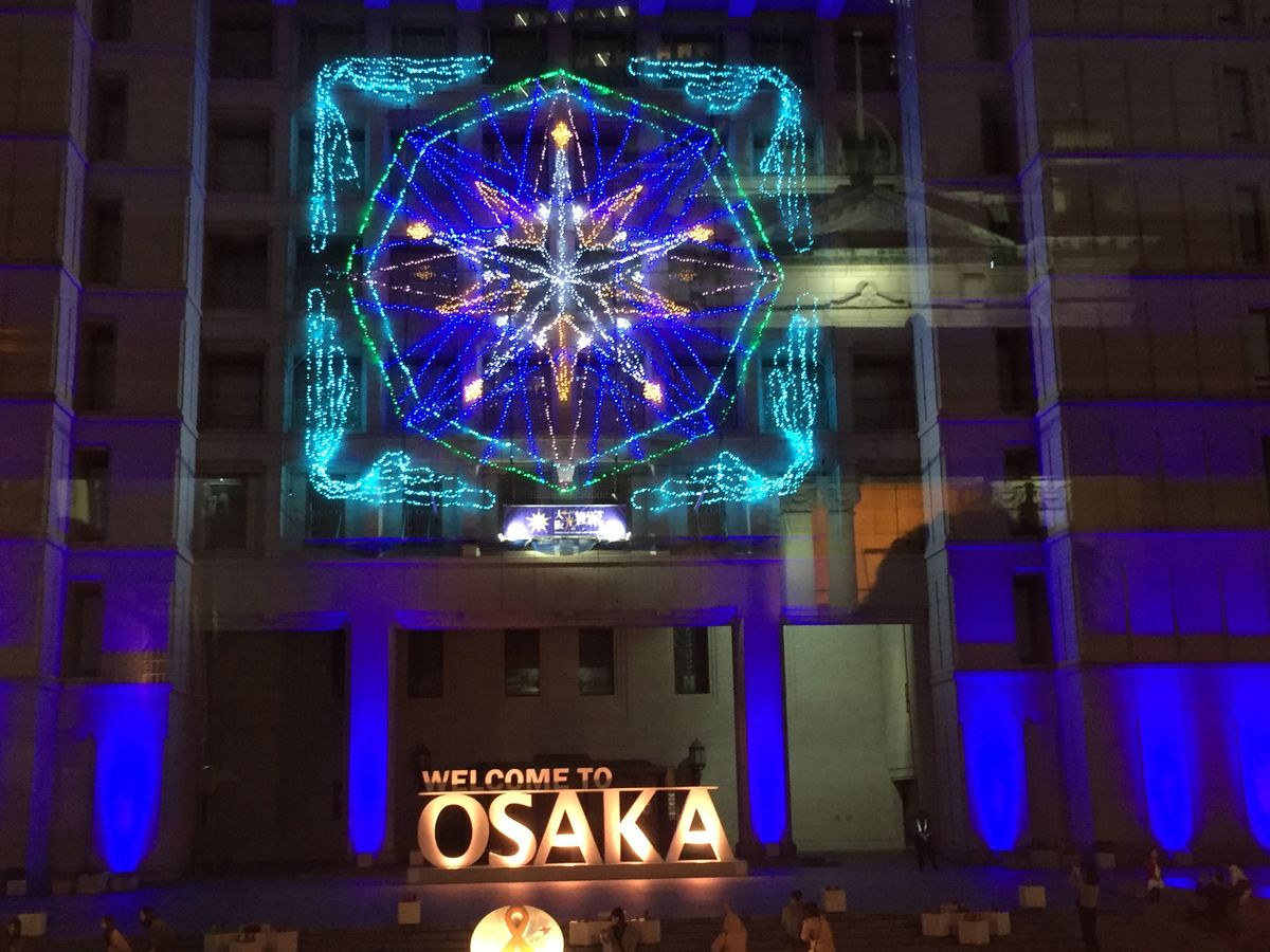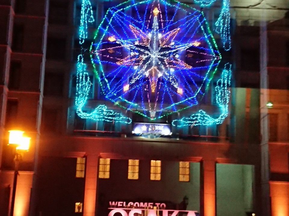 大阪の御堂筋を昼間に歩き、広くてすごい通りだらなぁと思い感動していましたが、夜はまた雰囲気が変わり、何メートルか毎に様々な色に変わるイルミネーションが幻想的。大阪って東京よりスケールが大きいですね。