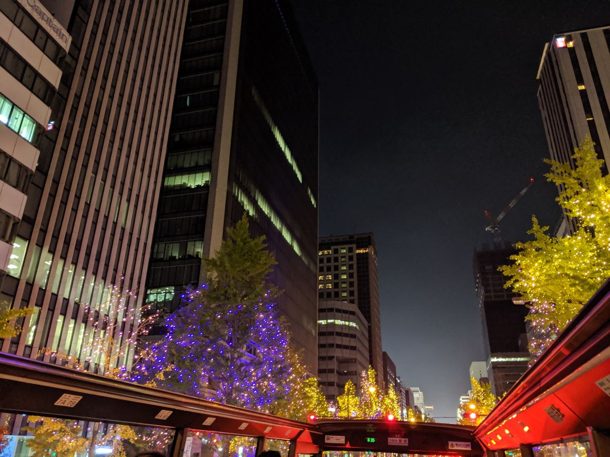 バスから見る御堂筋のイルミネーション、とても良かったです。