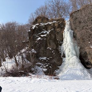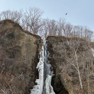 スノーシューで雪上や急坂を歩くのが楽しく、プチ冒険を安全に案内していただいて、急に天候が暖かくなった時で旅行運がなかったのですが、それでも今回の旅で1番楽しかった思い出になりました。残った氷瀑でも充分美しく、一部流れる水の春の音、よい体験が出来ました。