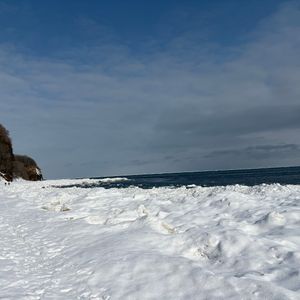 一方に白銀の知床連山、他方に流氷に閉ざされた海をまじかに眺められて、感動しました。